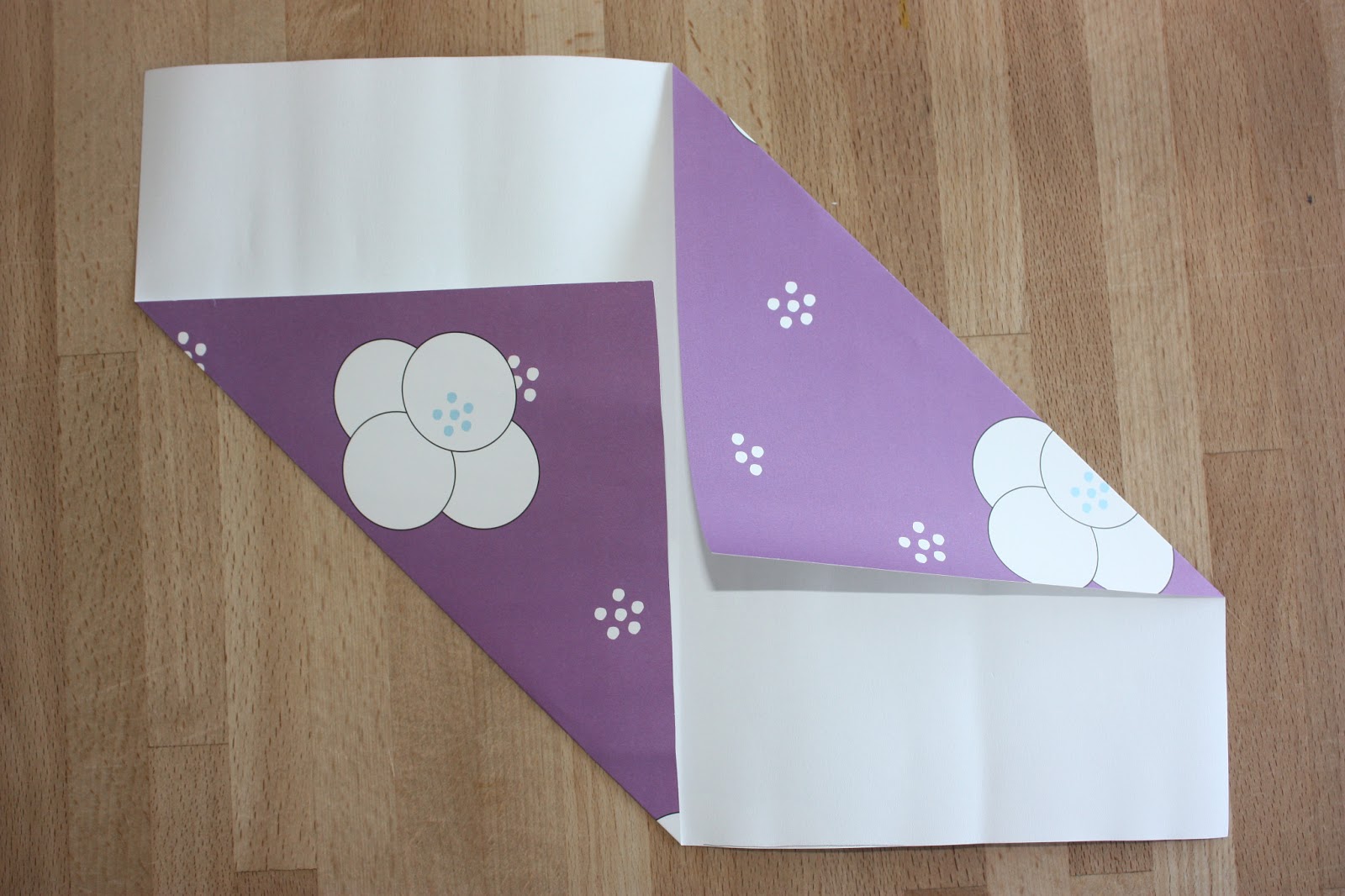 Det eneste du skal bruge er papir i A4 størrelse - her er brugt gavepapir, men flotte reklamer mv. kan også sagtens bruges.